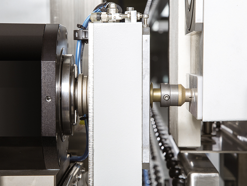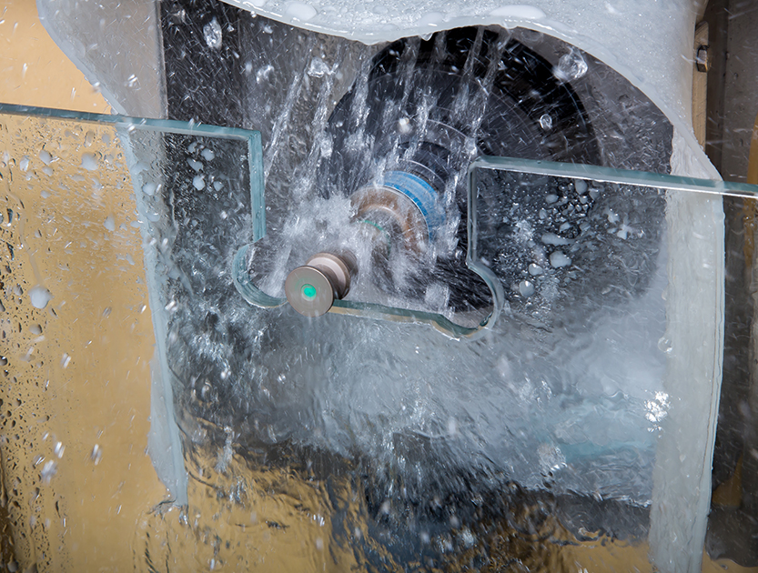 For the milling phase, we confirm the winning feature of still glass processing and the positioning of the suction cup always close to the work area. Optimal situation that allows higher milling speed and grinding precision, especially for threads, lower risk of glass plate breaking or chipping compared to competing models that move the glass.
