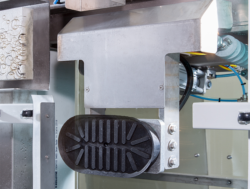 Fast and precise milling and grinding processes, characterized by low-wear of mechanical parts thanks to the stationary glass and suction cups always positioned close to the working area.