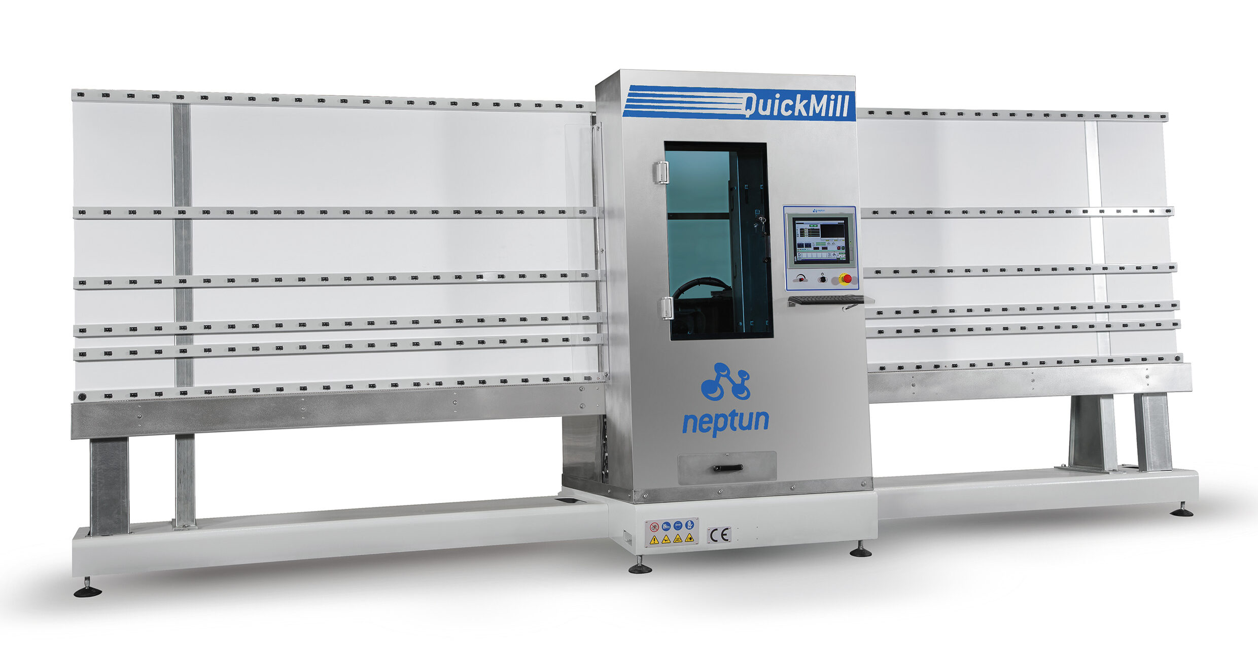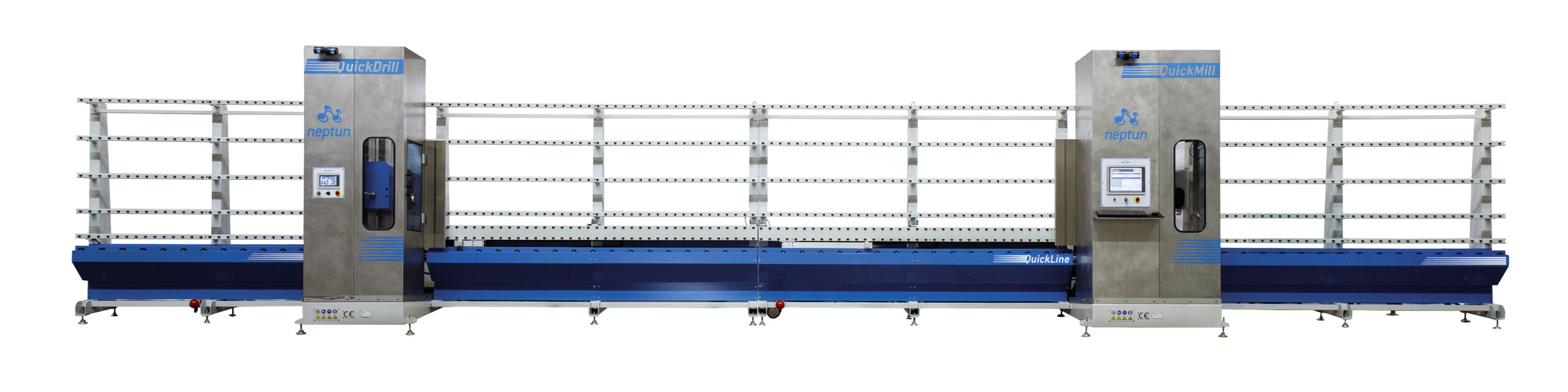 Quickline is the in-line combination, even at different times, of the Quickmill 160-30 and one of the 2 Quickdrills. Ideal for the serial production of doors, shower enclosures, parapets and showcases of medium-large size. Quickline is required in production contexts 24/7, usually in line with washing machines and automatic loading / unloading where downtime, even short, are not tolerated.